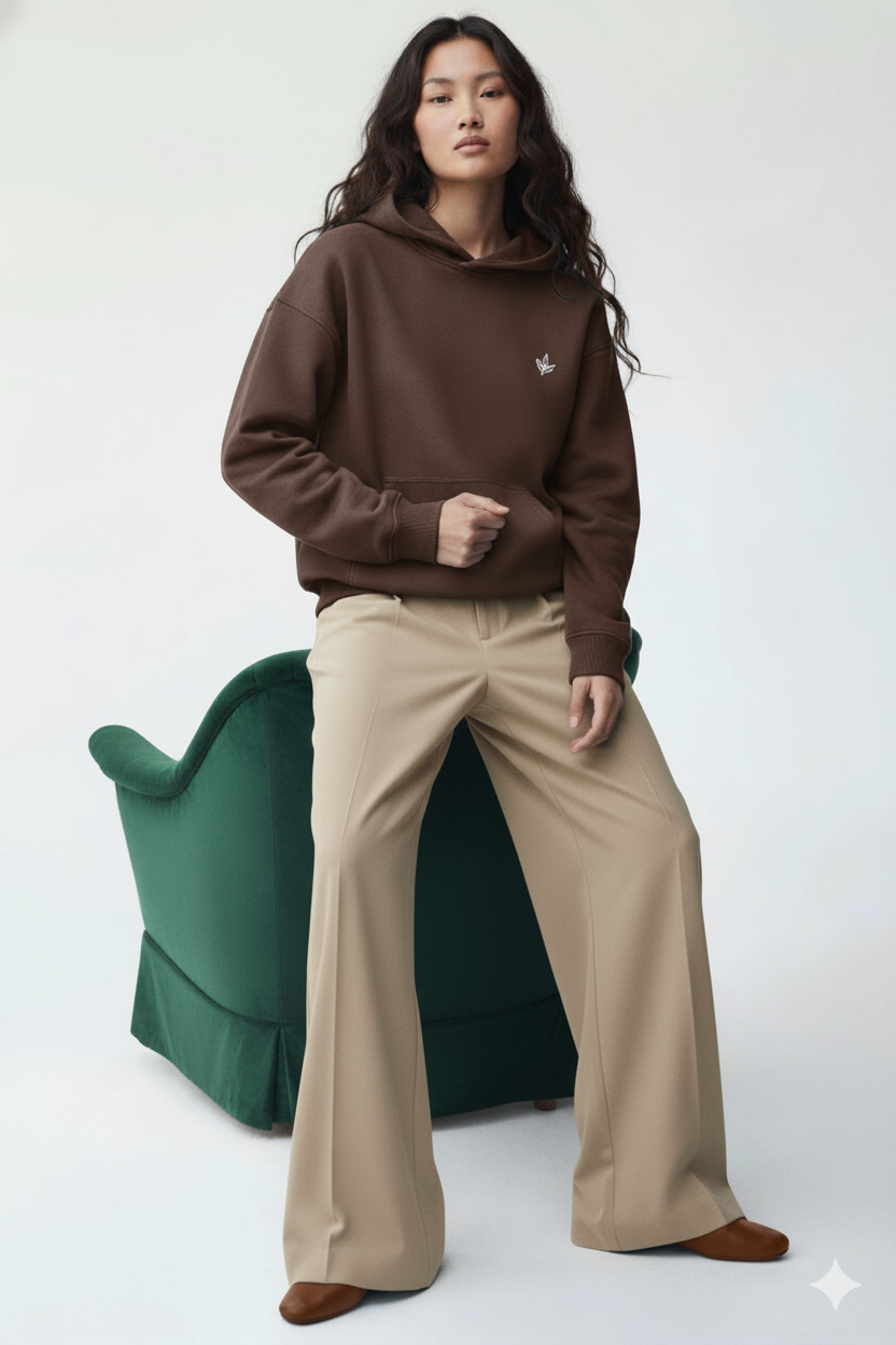 Rich in tone and comfort — our Coffee Hoodie is crafted from 330 GSM polyester-cotton fleece with soft embroidery detailing for a warm yet refined look.
