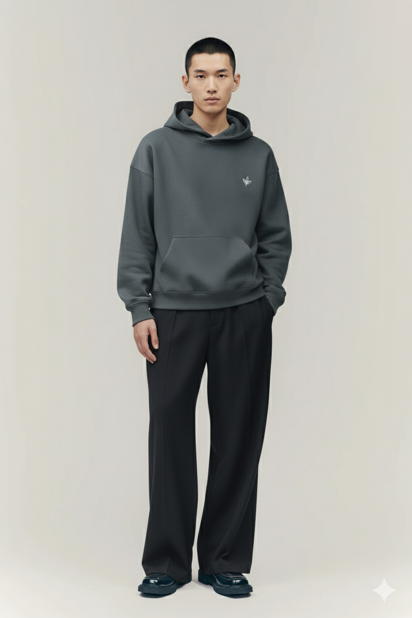 Crafted from polyester-cotton fleece (330 GSM), the Grey Hoodie is designed for versatility and comfort. Its brushed inner lining offers cosy warmth, while the embroidered detailing adds depth to its clean, minimal profile. The relaxed fit and rib-knit finish make it ideal for daily wear — easy to style, durable, and always on trend.