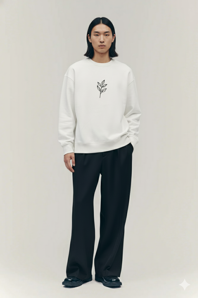 Minimal, versatile, and effortlessly stylish — the White Sweatshirt is made from polyester-cotton fleece (330 GSM), providing warmth without weight. Its soft brushed interior and finely embroidered design reflect subtle luxury, while the ribbed cuffs and hem ensure a comfortable, lasting fit.